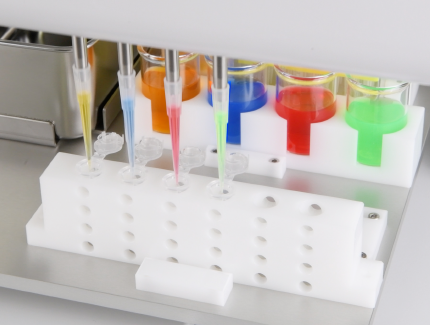 Ein Pipettenkopf: Automatische Verhaftung und Abstand des Tipps |