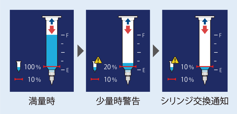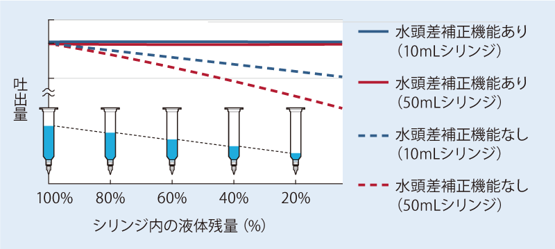 Wenn die Flüssigkeiten in der Spritzenabnahme, ⾼ さが Flüssigkeit ⾯ des Inneren niedrig wird. ⼒ (Druck ⼒), über die Flüssigkeit durch diesen ⾼ さの Abnahme hängend, wird schwach, und, infolgedessen, Entladungsabnahmen.