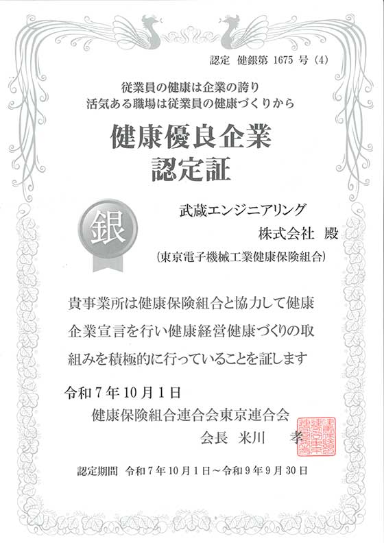 Es wurde von der Elektronmaschinenindustrieversicherungsvereinigung von Tokio von "einem gesunden ausgezeichneten Unternehmen" autorisiert.
